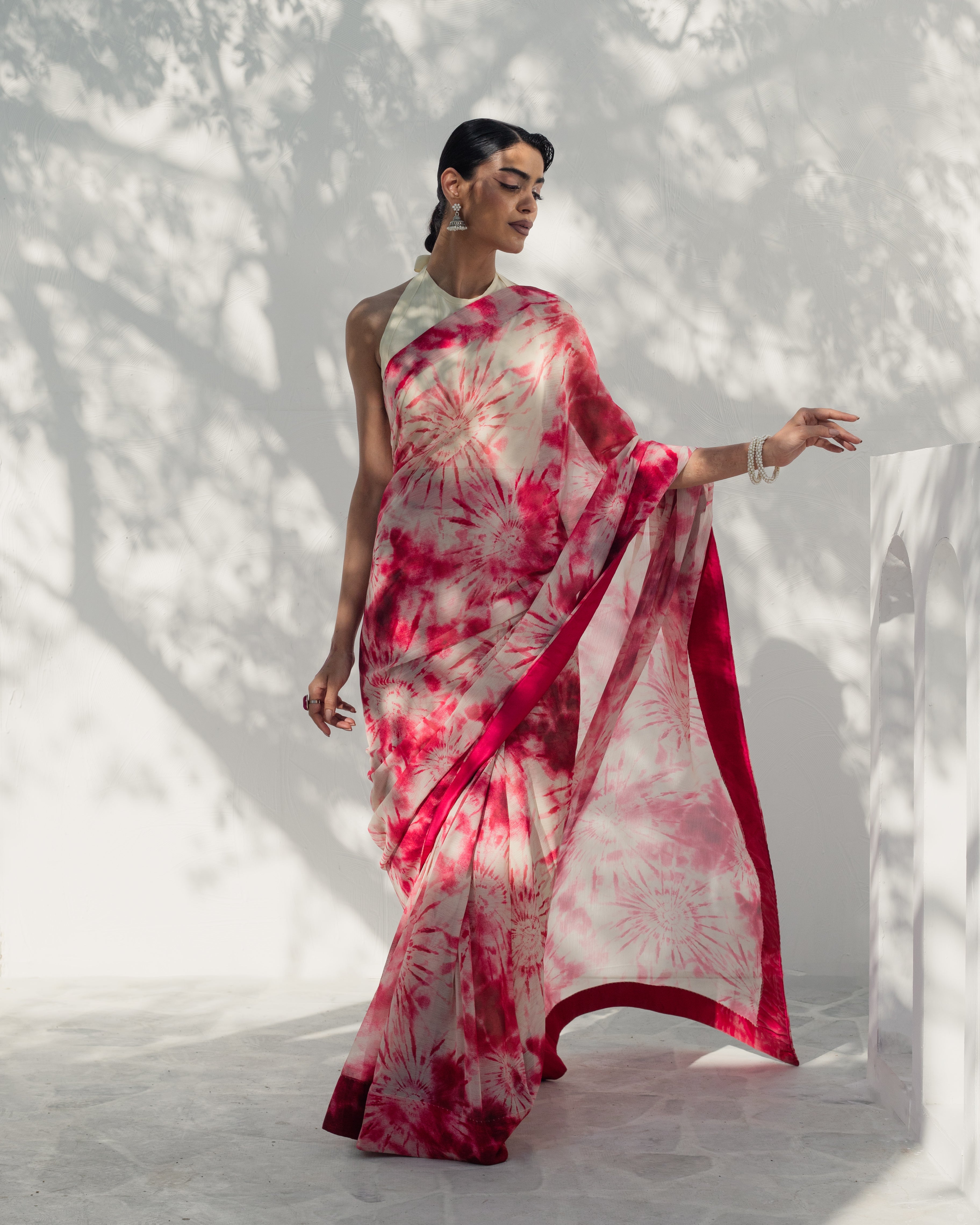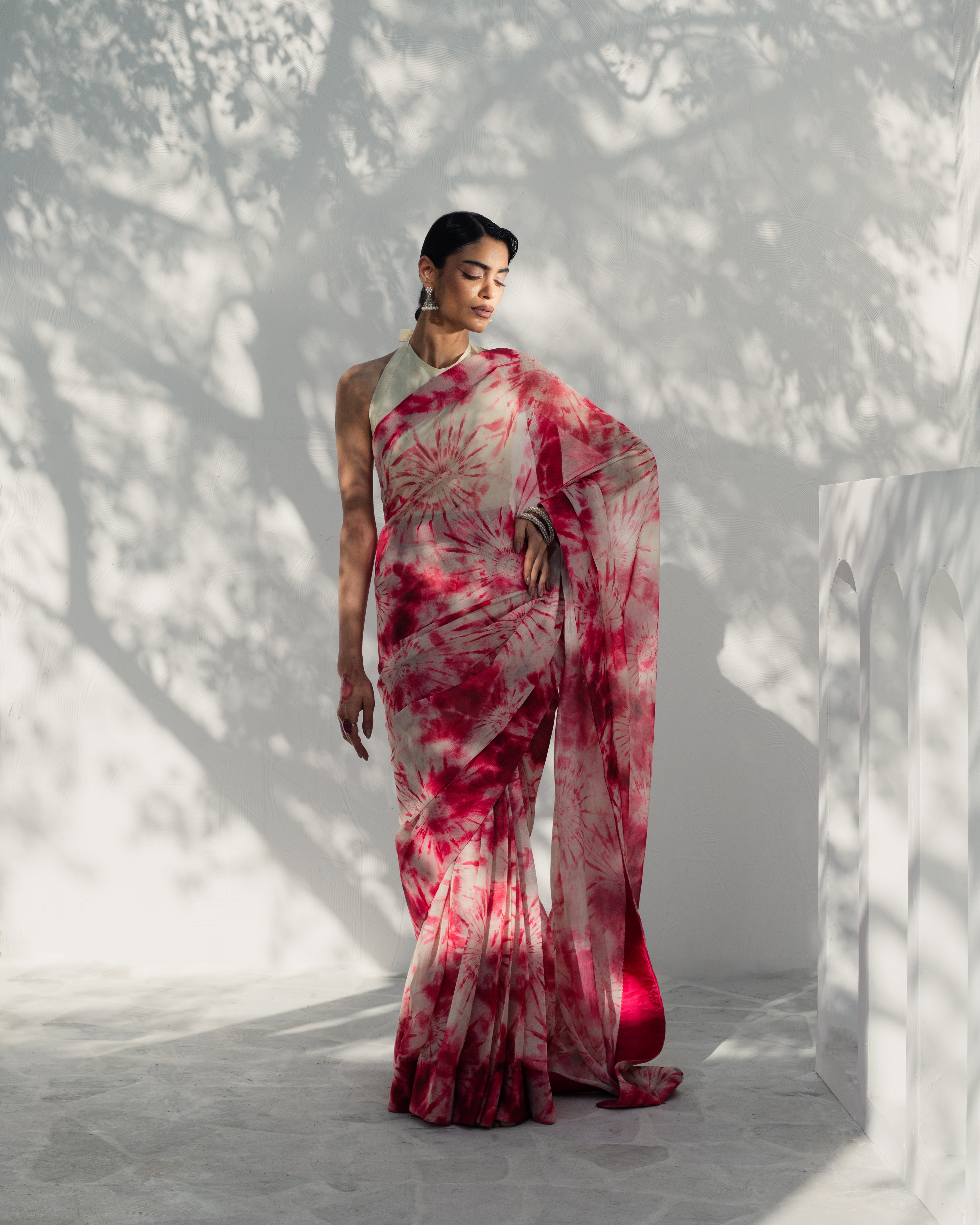 Our Tie and Dye Saree is a unique and artistic piece that showcases a beautiful blend of colors. Perfect for those who love to stand out, this saree is a blend of traditional technique and contemporary style.