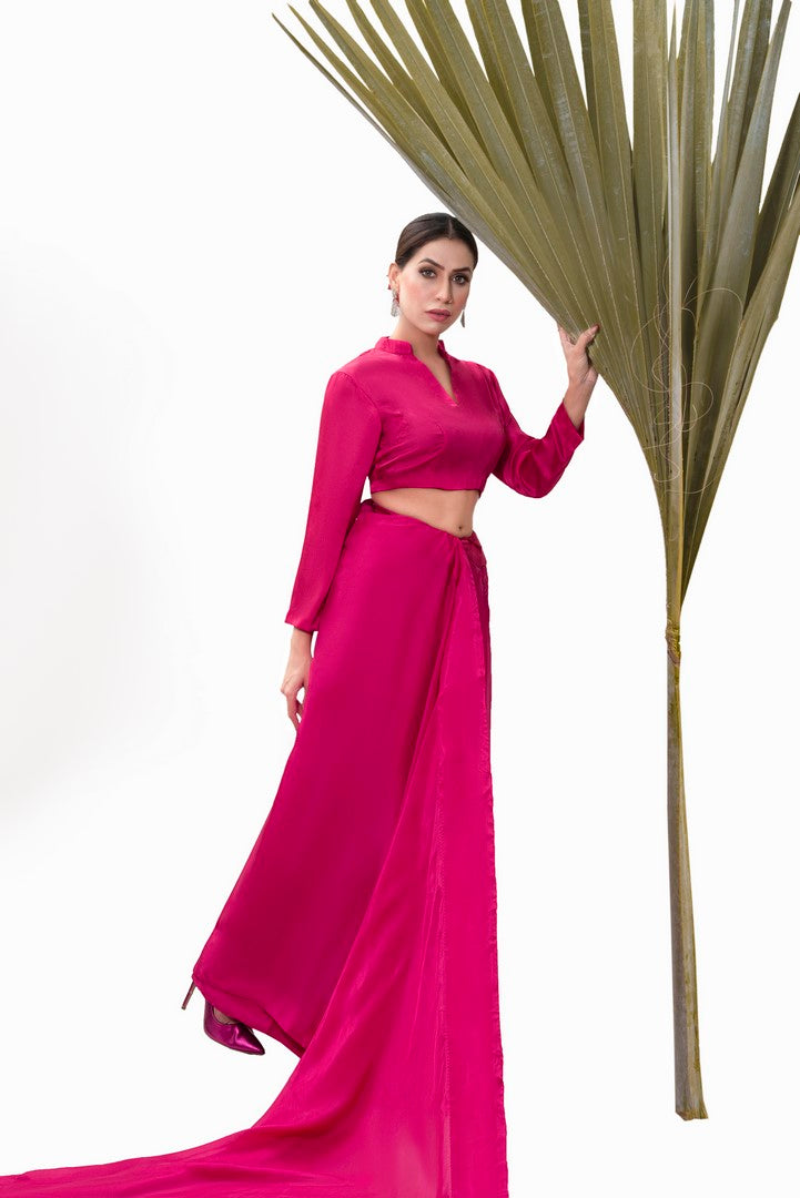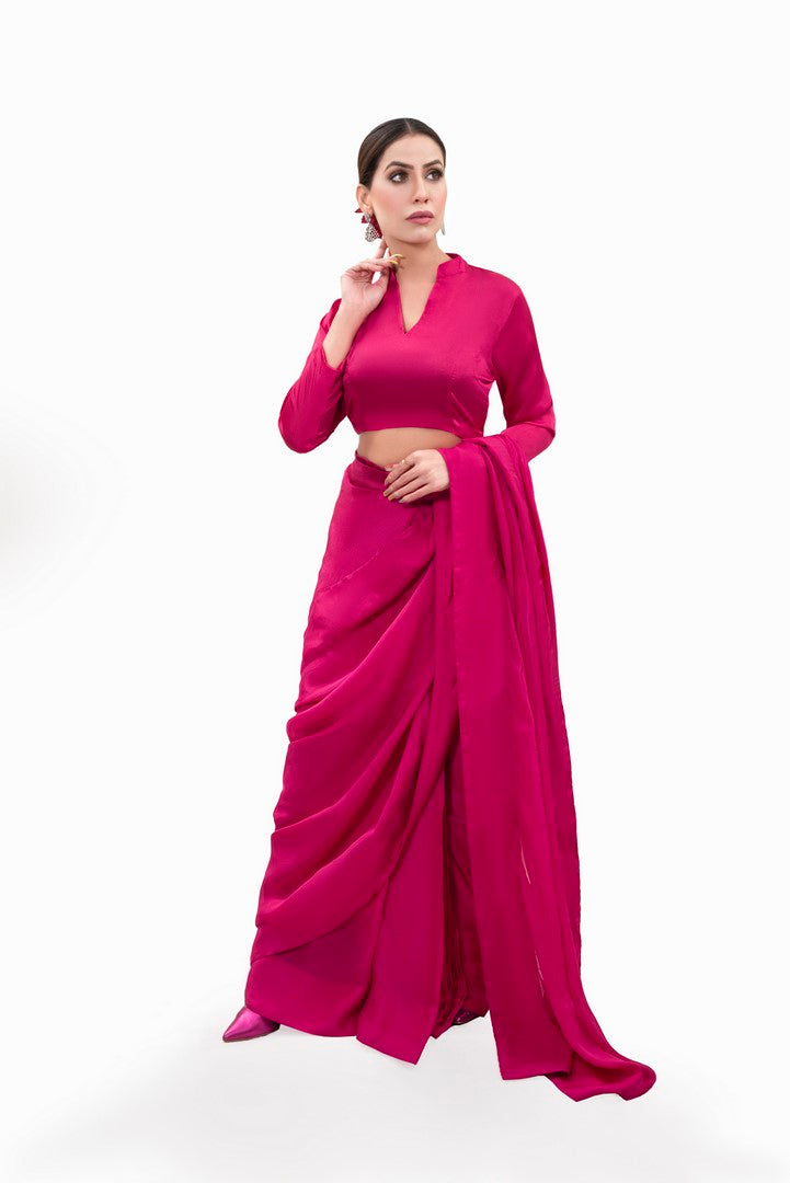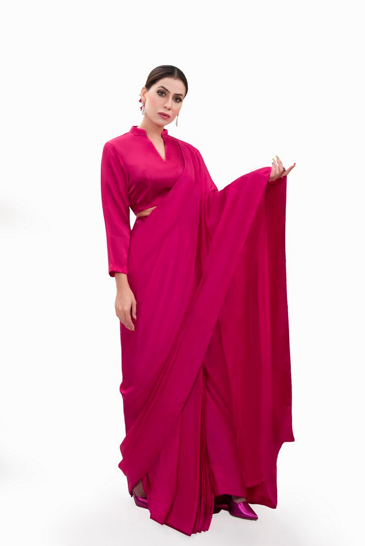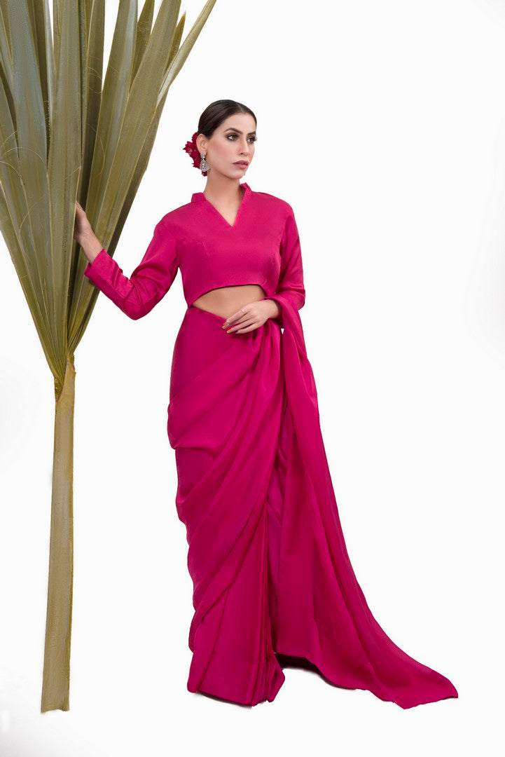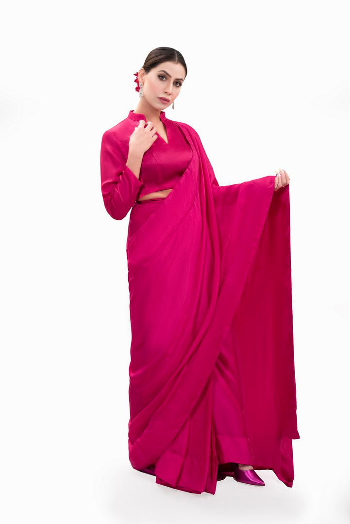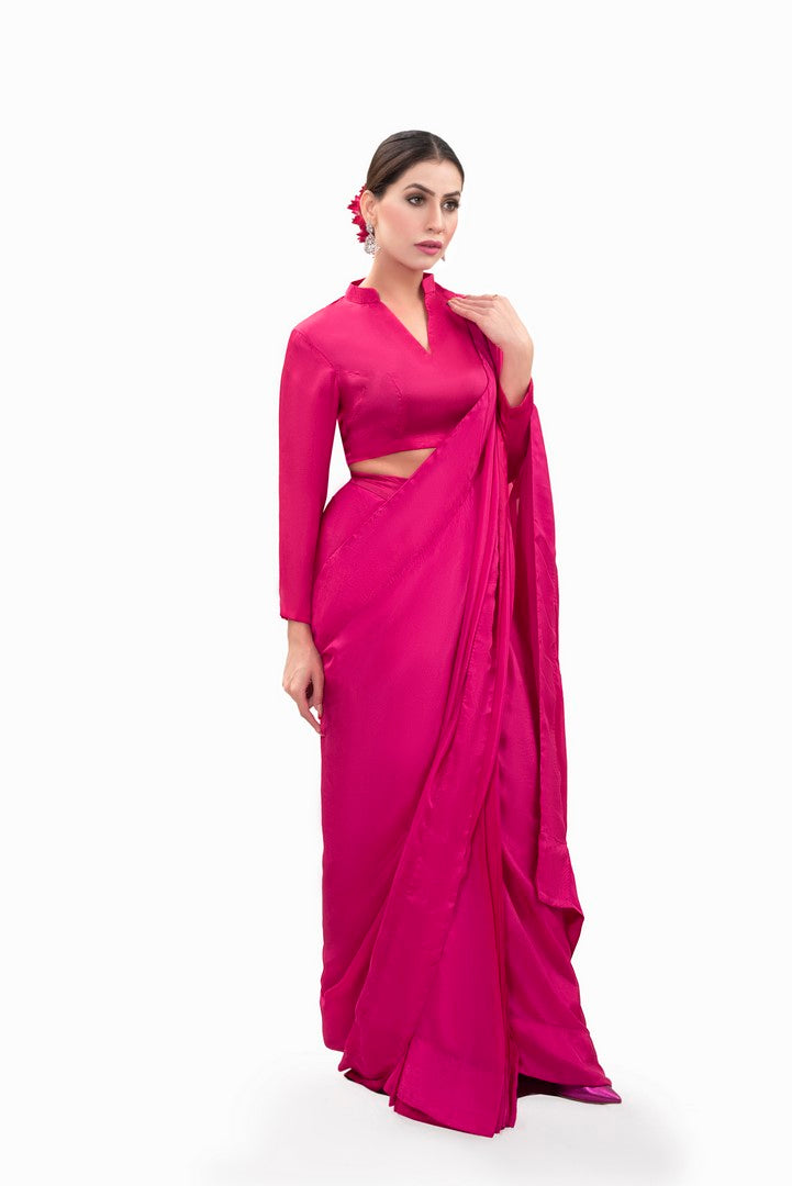 There's something about bright pink that just speaks of romance! And this oriental pink saree is exactly that.